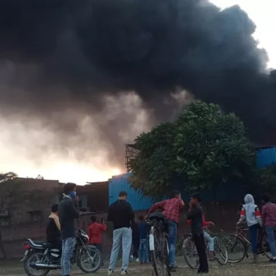 हैंडलूम फैक्ट्री में लगी भीषण आग, श्रमिकों ने दमकल विभाग का इंतजार नहीं किया, खुद ही बुझाने की कोशिश जारी